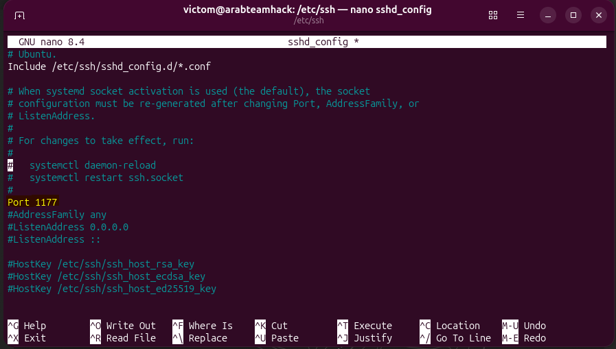 يمكن تغيير المنفذ إلى 1177 عن طريق إزالة علامة التعليق من السطر وكتابة Port 1177.