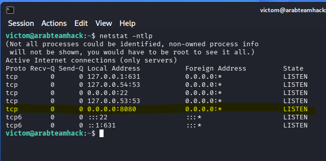علاوة على ذلك، من خلال الوصول إلى الغلاف (shell) الأولي، من الواضح أن تطبيق الويب يعمل داخليًا على المنفذ 8080.