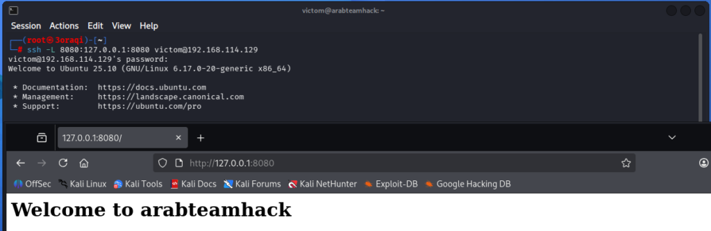 ssh -L 8080:127.0.0.1:8080 victom@192.168.114.129