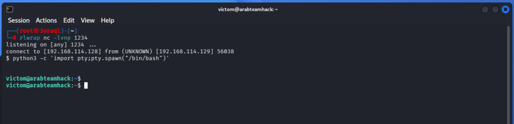 مع وجود وصول SSH تم تأسيسه بالفعل، يتم تنفيذ الحمولة على الجلسة التفاعلية للهدف: