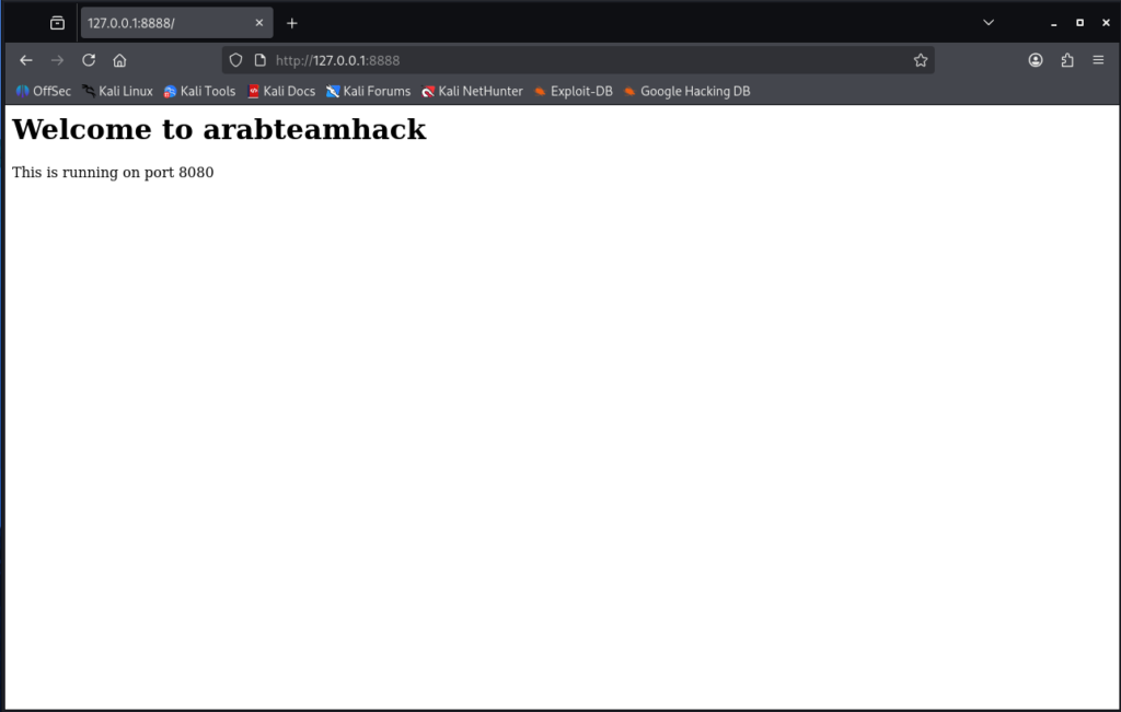 بعد ذلك، بمجرد نسخ ملف authorized_keys، يمكننا الآن استخدام المفتاح الخاص لمستخدم root داخل جهاز كالي لتنفيذ إعادة توجيه المنفذ المحلي والوصول إلى تطبيق الويب الذي يعمل على المنفذ 8080. هنا نقوم بإعادة توجيه منفذ التطبيق إلى 8888 على جهاز كالي.
