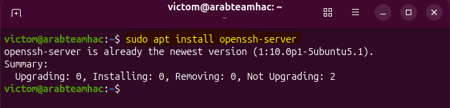 يقوم مدير الحزم بتثبيت عدة مكونات إضافية إلى جانب خادم OpenSSH، من بينها openssh-sftp-server لدعم نقل الملفات، وncurses-term لتعريفات الطرفية، بالإضافة إلى ssh-import-id الذي يُستخدم لاستيراد المفاتيح العامة من منصات مثل GitHub أو Launchpad.