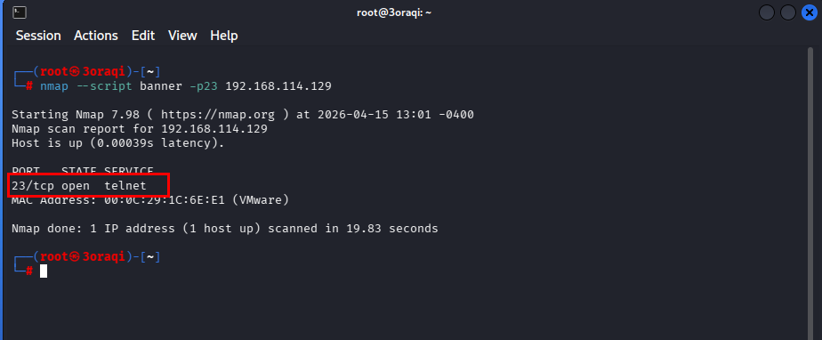 اختبار الاختراق على Telnet (المنفذ 23)