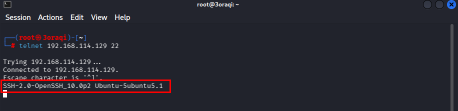 للعثور على إصدار خدمة SSH العاملة على جهاز الهدف، افتح الطرفية في كالي لينكس باستخدام الاوامر التالية .